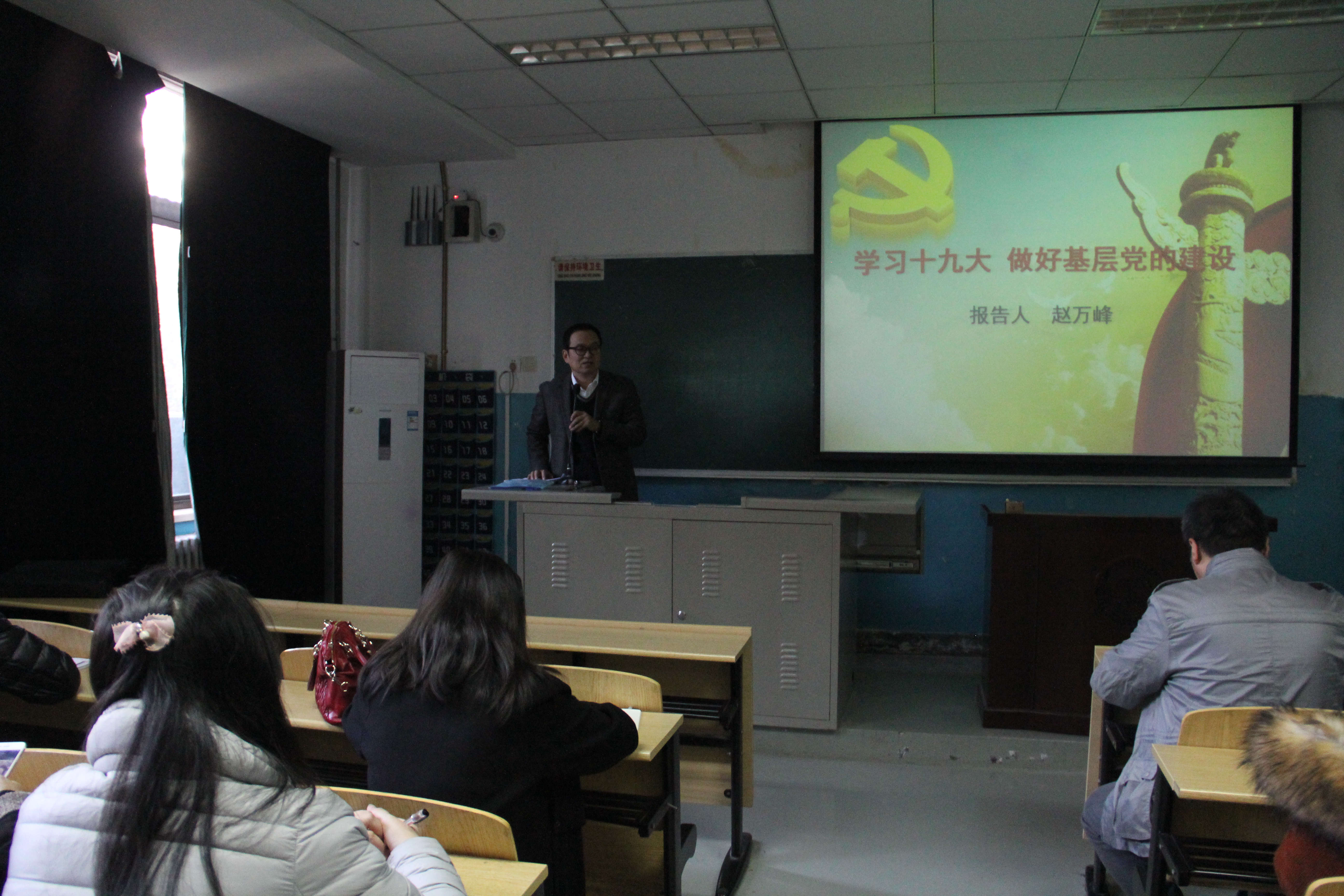 按照《球盟会qmh学习宣传贯彻十九大精神实施方案》安排,为准确把握党的十九大的思想精髓和核心要义,把党的十九大精神中有关基层党建的要求讲清楚、讲明白,让广大党员干部和师生员工听得懂、能领会、可落实,125日下午14:00,学院党委书记赵万峰为学院全体党支部书记、预备党员、入党积极分子讲授《学习十九大、做好基层党的建设》专题党课。