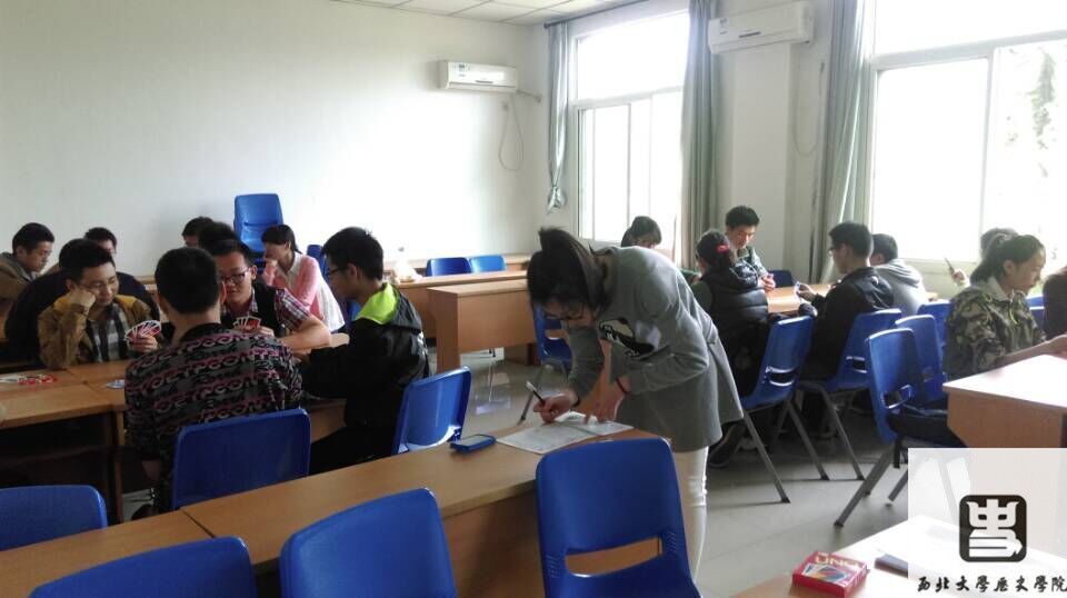 421日下午两点三十分,经过紧锣密鼓的准备,球盟会qmh学生会组织部于院楼420教室成功的举办了UNO纸牌友谊交流赛。UNO纸牌是一个集智慧与运气于一身的休闲牌类,有着很高的娱乐性和竞技性,近年来深受中国青年群体的喜爱。为了丰富同学们的课余生活,活跃大家的气氛,不占用大家学习的时间,我们选择了星期六这个恰当的时机举行友谊交流赛。