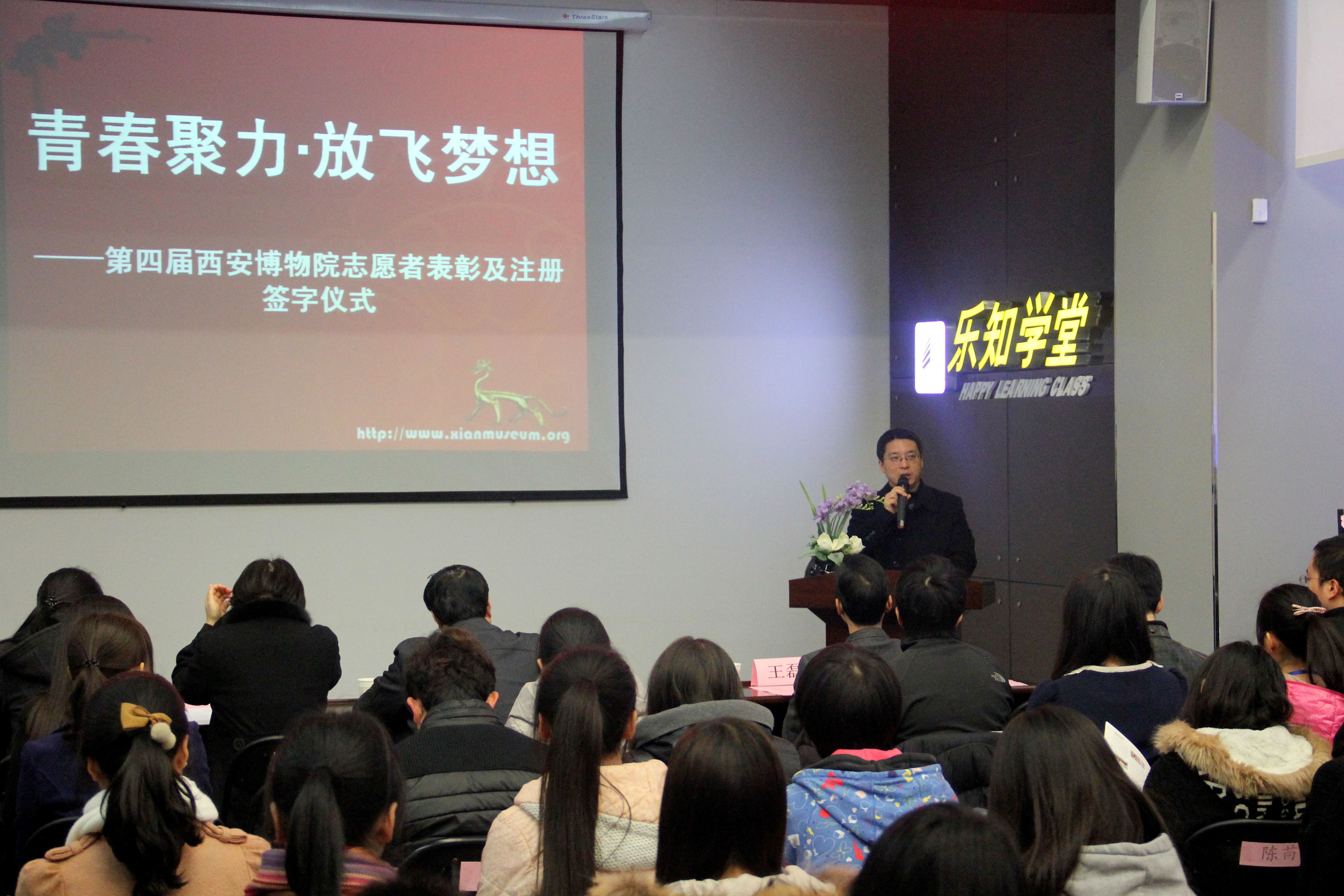 2013125日早上九点西安博物院乐知学堂举行了第四届西博志愿者签约仪式。球盟会党总支书记李国良老师团委书记薛原老师讲解员代表一同参与了签约仪式。