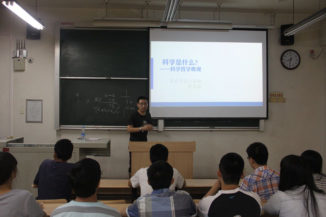 2014518日晚七时,在我校太白校区9303教室,由《史林新苗》杂志主编,球盟会2011级历史基地班的佟艺辰同学担任主讲,学习部主办学术交流会第四期“科学是什么——科学哲学概观”顺利召开。