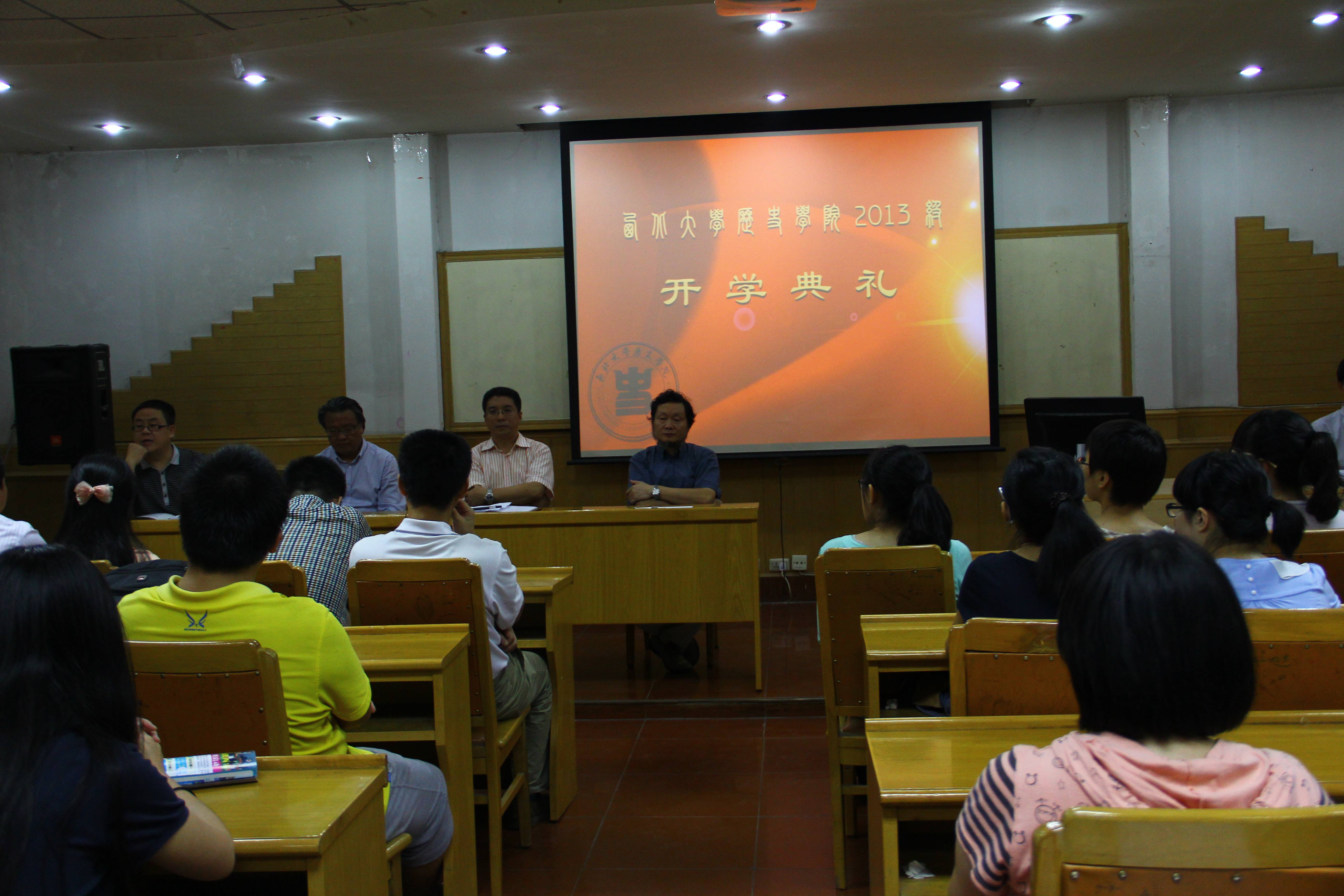 球盟会qmh2013级新生开学典礼于94日下午230分在球盟会qmh二楼多媒体教室隆重举行。出席本次典礼的有球盟会院长陈峰教授、党总支书记李国良老师、副院长王新刚教授、副院长李长宏老师以及团委书记薛原老师。2013级全体本科和研究生新生参加了此次典礼。