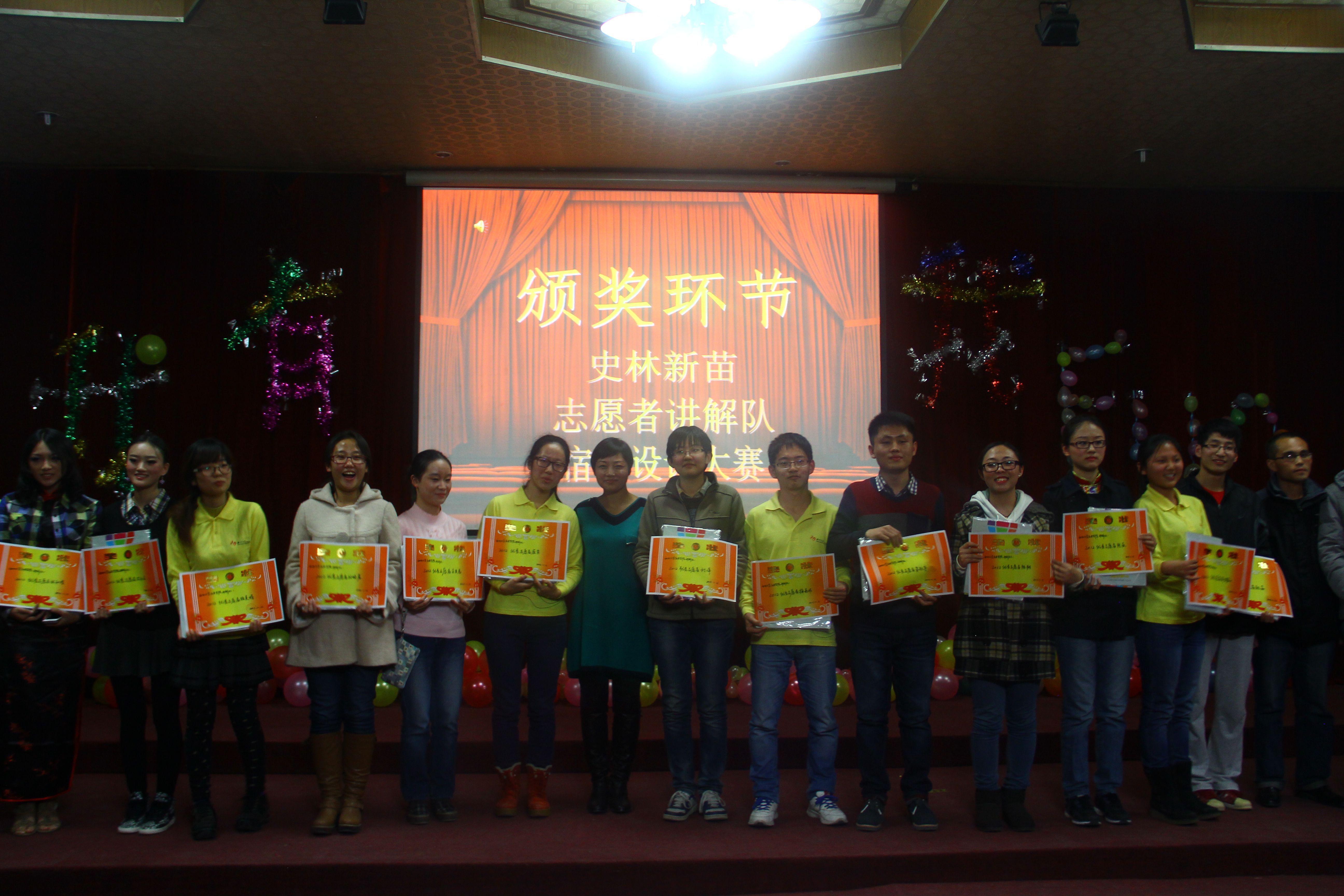 晚会节目精彩纷呈,别具一格,有充满历史韵味的《进学解》《自挂东南枝》,有展现少数民族舞蹈的《七月火把节》,有趣味小品《知识竞赛》,有萌点十足的舞蹈《恋爱循环》,原汁原味,充分展现球盟会学生表演能力的话剧《雷雨》,还有另类搞笑的朦胧诗朗诵。接着,球盟会举行了颁奖仪式,对这一年来在《史林新苗》辛勤工作的编辑们,在陕西省历史博物馆和西安市博物院一丝不苟的讲解员们,以及宿舍设计大赛表现优异的宿舍代表们进行了证书颁发和礼品赠送。最后球盟会qmh爱渡志愿者协会的成员们合唱《相亲相爱》,再次将全场的气氛推向了高潮。