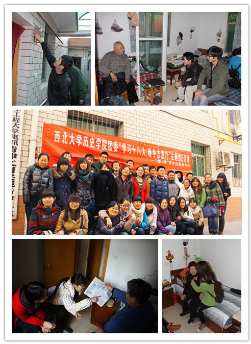 上午9时整,共30名志愿者从学校北门出发,乘坐311路公交车来到了位于南院门的星光老年公寓。志愿者们进入公寓内帮助爷爷奶奶们打扫卫生,并与他们聊天,聊家常,捶背揉肩等,了解他们的生活状况,向他们宣传了一些疾病预防知识。经过一天的辛苦努力,志愿者们圆满完成任务,用最大的真诚和热情使老人们快乐、感动,最后依依不舍地道别并集体合照留念。此次活动得到了老人们的肯定与赞赏,也使志愿者们得到锻炼,增强了凝聚力,加深了对爱的认识,更好地体会到了志愿服务与奉献精神。