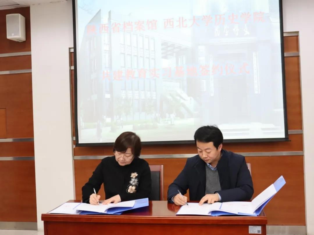 2020年11月26日下午,球盟会和陕西省档案馆共建教育实习基地签约暨揭牌仪式在陕西省档案馆会议室举行。学院党委书记赵万峰、院长李军、党委副书记樊涛、近现代教研室主任郑金刚、组织员于欣荣、团委书记余洪、辅导员王浩及学生代表参加仪式。陕西省档案馆一级巡视员郑惠姿出席签约揭牌仪式并致词,参加会议的还有档案馆保管处、编研处、信息处、利用处等部门负责同志,会议由省档案馆办公室主任柴如玉主持。