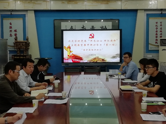 926日下午,球盟会qmh党委召开“不忘初心、牢记使命”主题教育集中研讨学习会议。会议由学院党委书记赵万峰同志主持,学院党委中心组成员,处级领导干部及各党支部书记参加了会议。集中学习讨论以“教育报国守初心”为主题,分为三个部分进行。首先由党委负责人部署学院“不忘初心、牢记使命”主题教育的近期各项活动安排。学院党委将从“教育报国”、“立德树人”、“回顾历程”等七个专题开展集中学习研讨,认真落实党中央和学校的相关安排,力戒形式主义,真正做到“不忘初心、牢记使命”。随后,由学院中国近现代史方向的党员教师兰梁斌同志向与会同志做“党史、新中国史的回顾、学习与启示”的专题报告。报告梳理了新中国成立以来党和国家走过的不凡之路,回顾了建党、建国以来,党和国家历经的沧桑变化。虽然有过无数次的坎坷磨难,中国共产党依旧经历住了考验,带领人们走向民主、富强。最后,与会同志踊跃发言,就实际情况谈及自己的感受。学院副院长李军同志指出研究党史国史不能拘泥于时间限制,要将其放入更加广阔的时间段上去思考;中东研究所副所长李福泉同志也结合自身的海外留学经历,表达了自己对建国七十年巨大变化的激动心情。