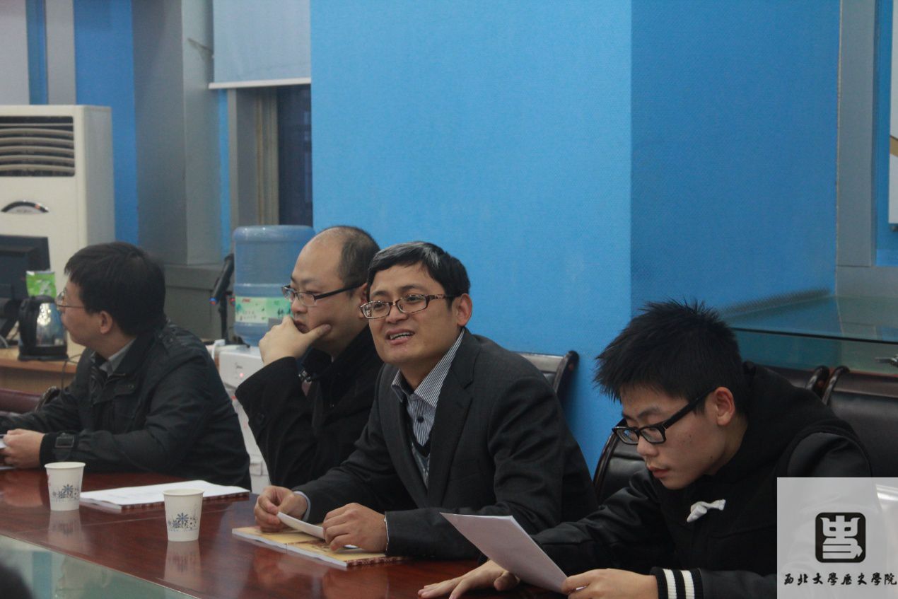 1118下午,球盟会qmh本科生学术刊物——史林新苗编辑部在文博学院一楼会议室进行2015纳新见面会。《史林新苗编辑执行委员会主任组胡坤、刘磊和裴成国三位老师和编辑部全体成员见面并与大家座谈。