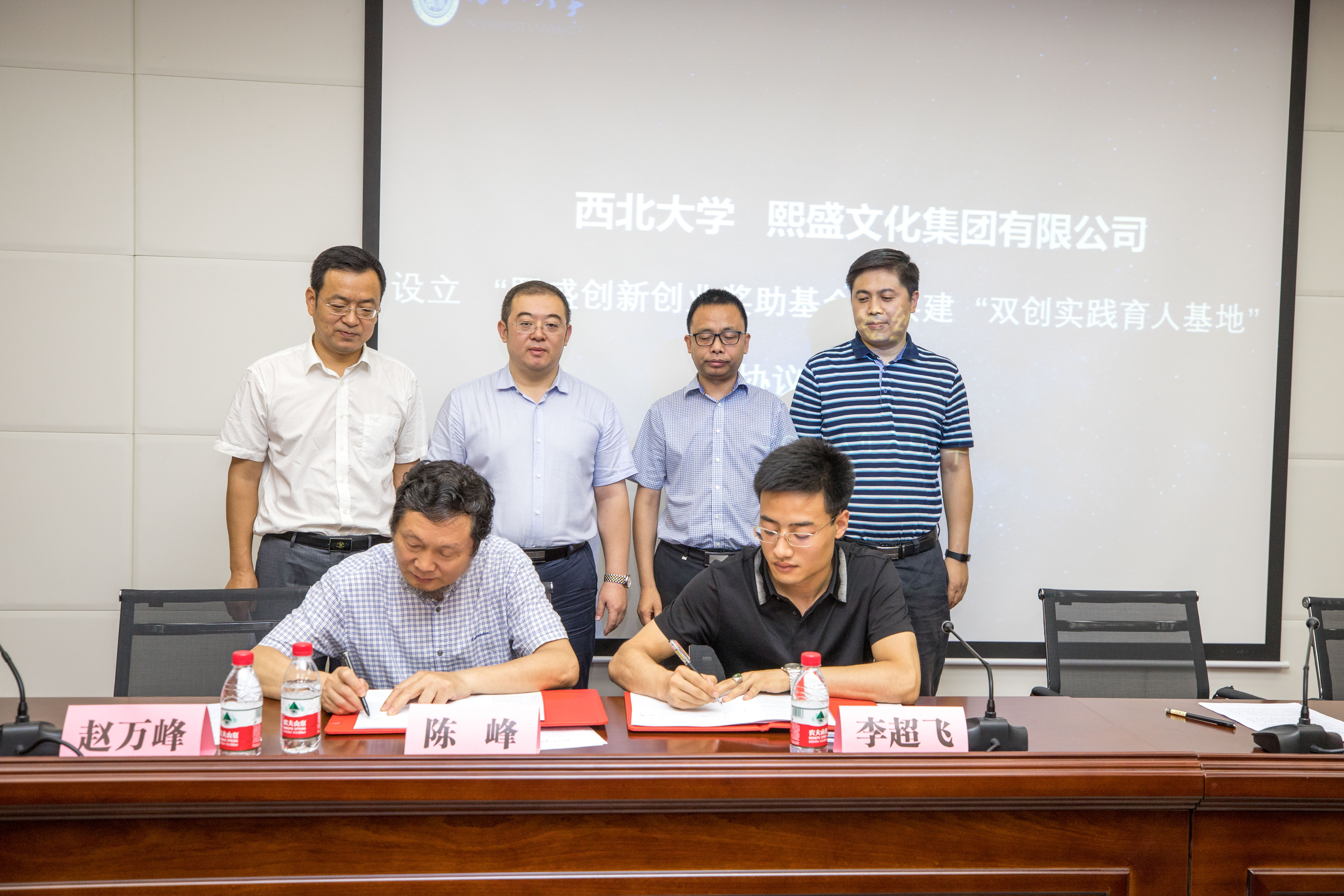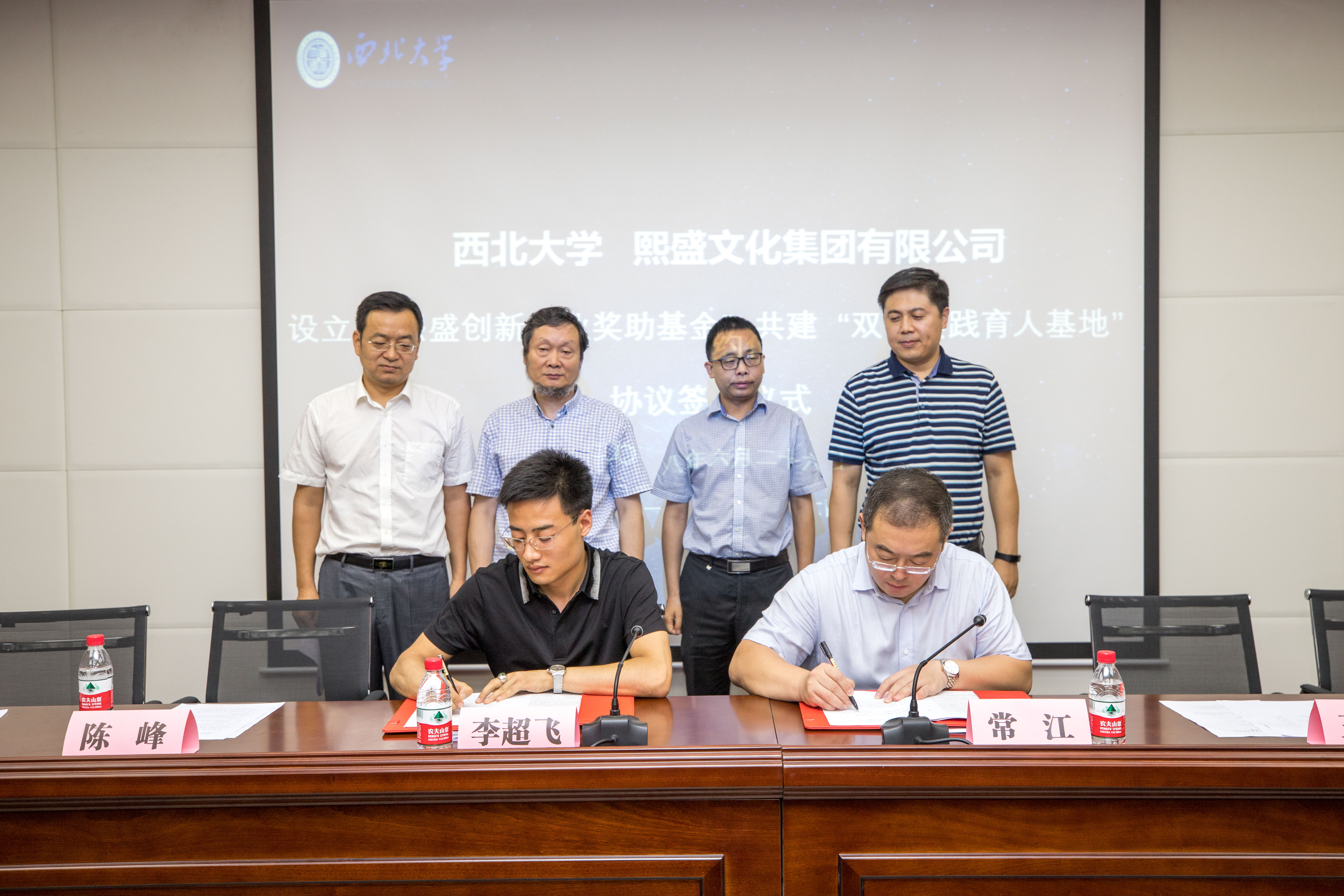 熙盛文化集团有限公司董事长李超飞分别与学校常江副校长、球盟会陈峰院长签订了合作协议,签约之后常江副校长与李超飞董事长为“双创实践育人基地”揭牌,签约仪式在和谐融洽的氛围中圆满结束。