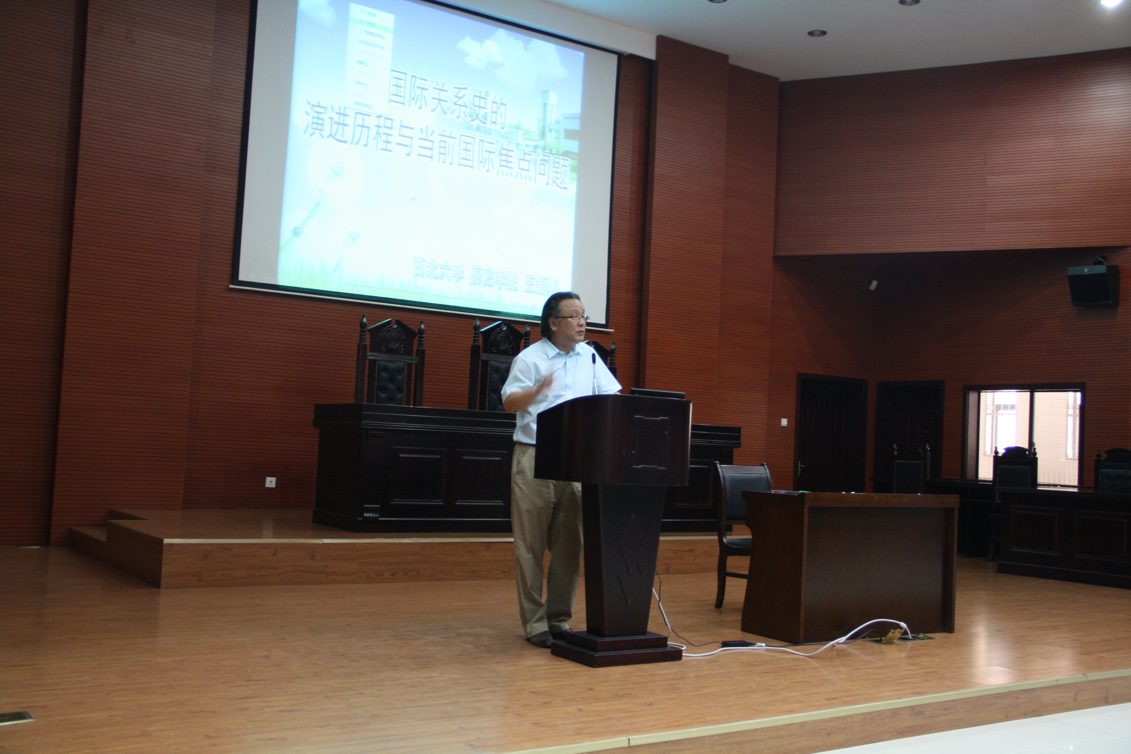 6月11日下午,由研究生院、研究生工作部主办,球盟会qmh承办的导师讲坛第十二讲在长安校区模拟法庭举办。球盟会qmh王新刚教授应邀作题为“国际关系史的演进历程与当前国际焦点问题”的专题报告。研究生院、球盟会qmh负责人及二百余名师生共同聆听了报告。