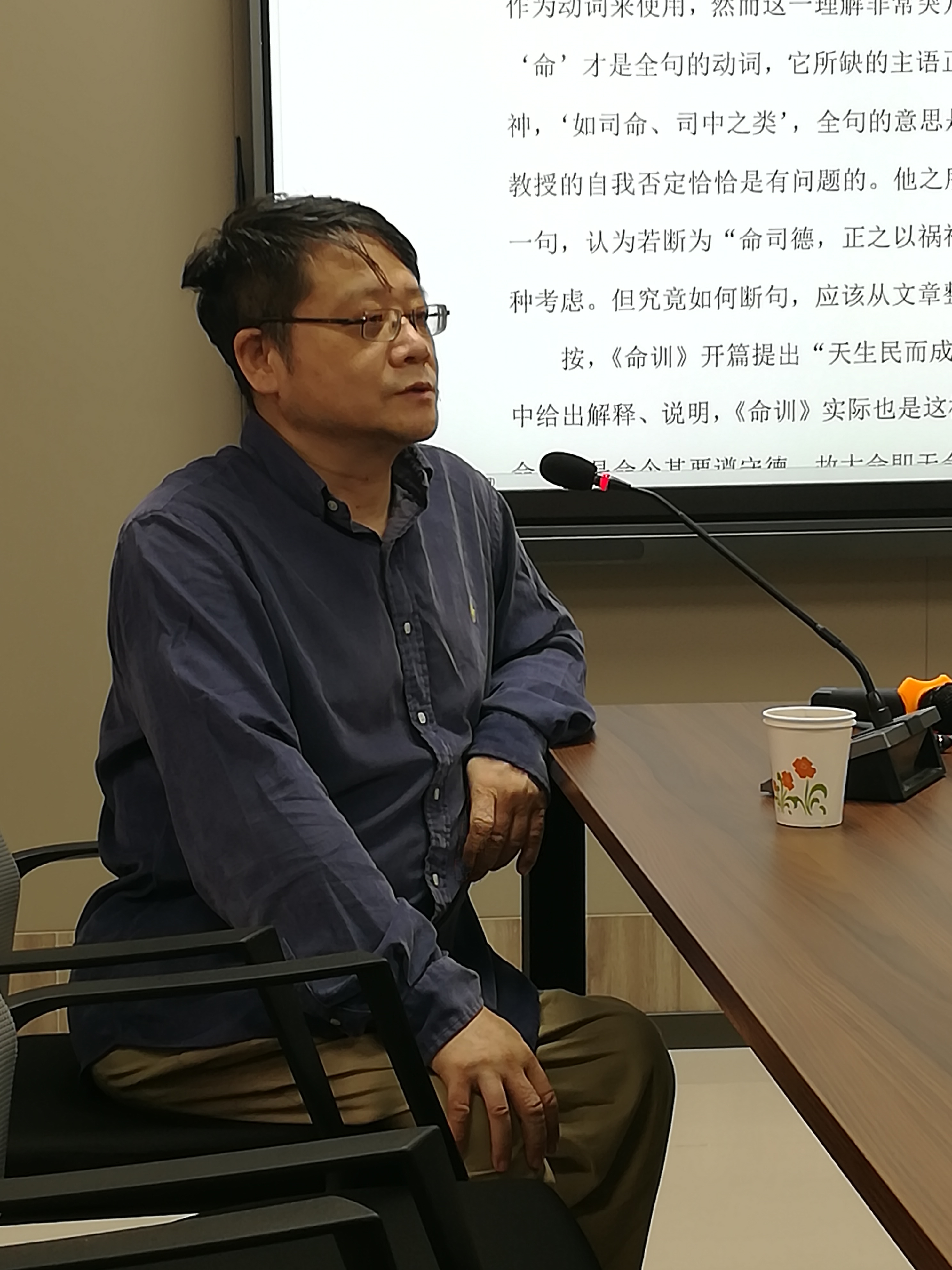 紧接着,梁涛教授分享了其最新研究。清华简仍是学术界的热点和焦点,对清华简的研究清华简《命训》的“大命”指天命,“小命”指个人运命。《命训》第二句当断为:“命司德,正之以祸福”,“司德”指主德,即遵从德。目前学者将该句断为:“命司德正之以祸福”,释“司德”为天神,是不正确的。《命训》的大命、小命说是对三代天命观的继承,同时又突出了个人运命的观念,这与孔子将天命与运命分离,以突出了人的道德自主有所不同,而是力图将二者重新统一起来,表现出鲜明的神道设教的思想特点。清华简《命训》的发现,表明《逸周书》尤其是前三篇《度训》《命训》《常训》的重要性。《逸周书》应由子夏的西河学派编订于战国前期的魏国,三《训》的作者可能是子夏后学中的某位不知名学者。三《训》的人性论、礼法论与荀子均存在密切联系,但其天命论则与荀子的人文主义走向存在较大反差,这种联系和反差反映了“孔荀之间”思想变动的复杂情况。