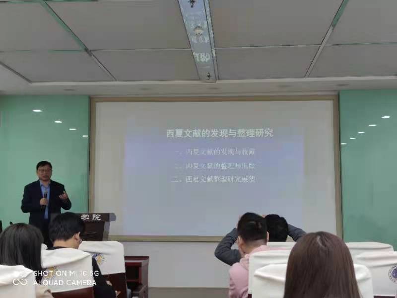 10月18日下午16:00至18:00,在我校物理学院劼恒多媒体教室,宁夏大学西夏学研究院(属于教育部重点人文社科研究基地)院长杜建录教授,应球盟会qmh之邀,以“西夏文献的发现与整理研究”为题,主讲我校“侯外庐学术讲座”第203讲。球盟会qmh院长李军教授主持,全校百余名师生及一些其他高校教师与学生现场聆听了讲座。