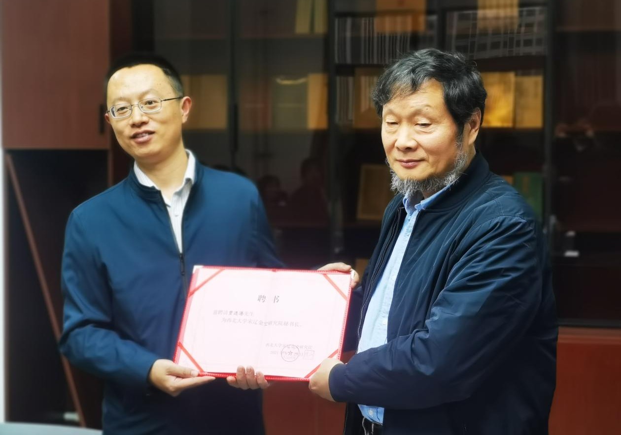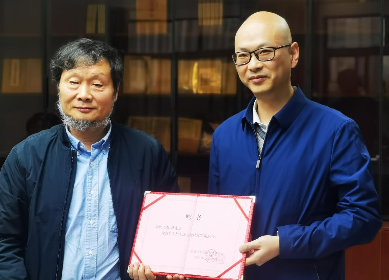 研讨会上宋辽金史研究院院长陈峰教授还分别颁发了副院长和秘书长聘书。哈萨克斯坦亚萨维哈萨克土耳其国际大学留学生别克向研究院赠送了纪念品喀山锅。