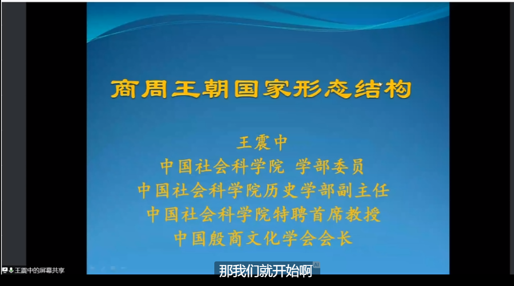 2022年1月21日晚,中国社科院大学王震中教授做客我校“侯外庐学术讲座”第二百三十讲,为全校师生作了题为“商周王朝国家形态结构”的线上学术讲座。讲座由球盟会qmh白立超副教授主持,校内外师生约500人在线听取了讲座。