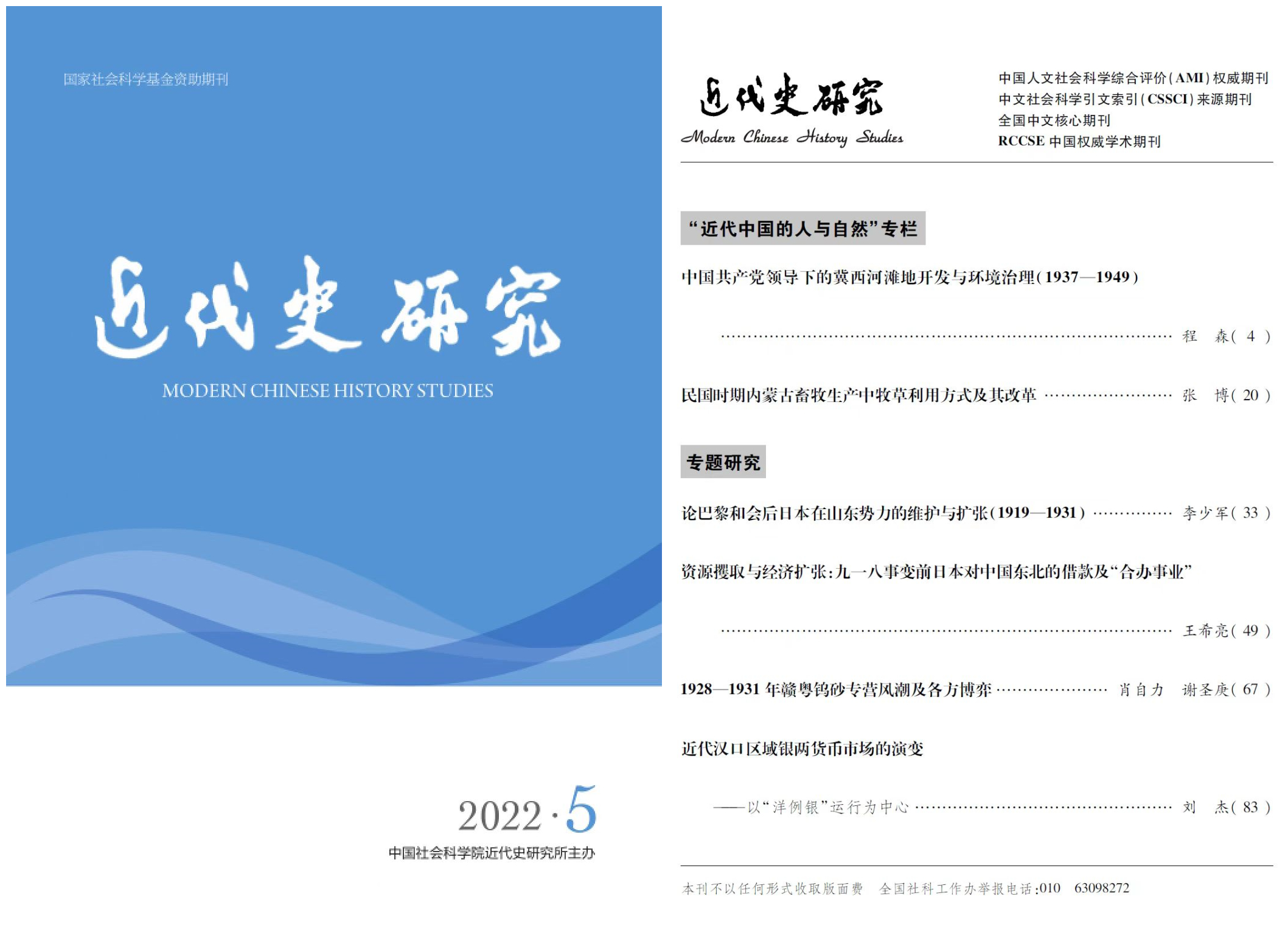 近日,球盟会青年教师张博在《近代史研究》2022年第5期上发表了专题论文《民国时期内蒙古畜牧生产中牧草利用方式及改革》。