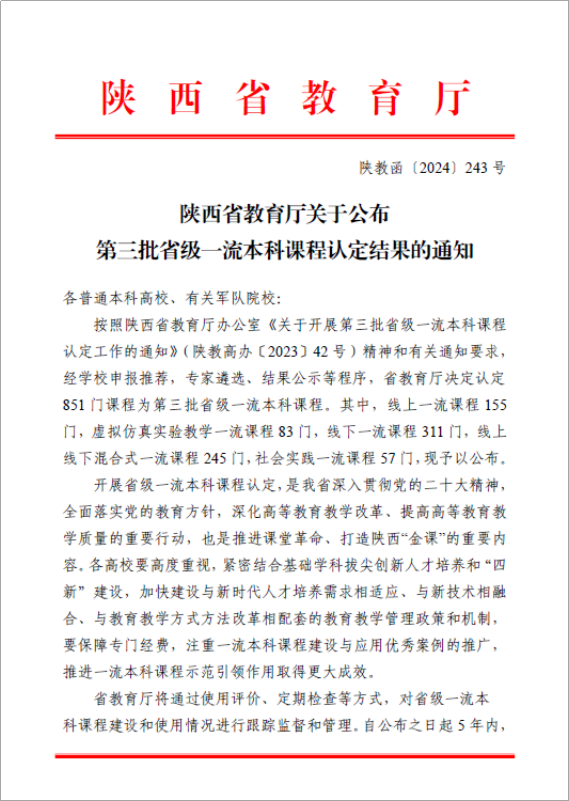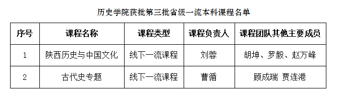 近日,陕西省教育厅公布第三批省级一流本科课程认定结果名单,球盟会《陕西历史与中国文化》和《古代史专题》2门课程入选。截止目前,学院1门课程入选国家级一流本科课程,3门课程获批省级一流本科课程。