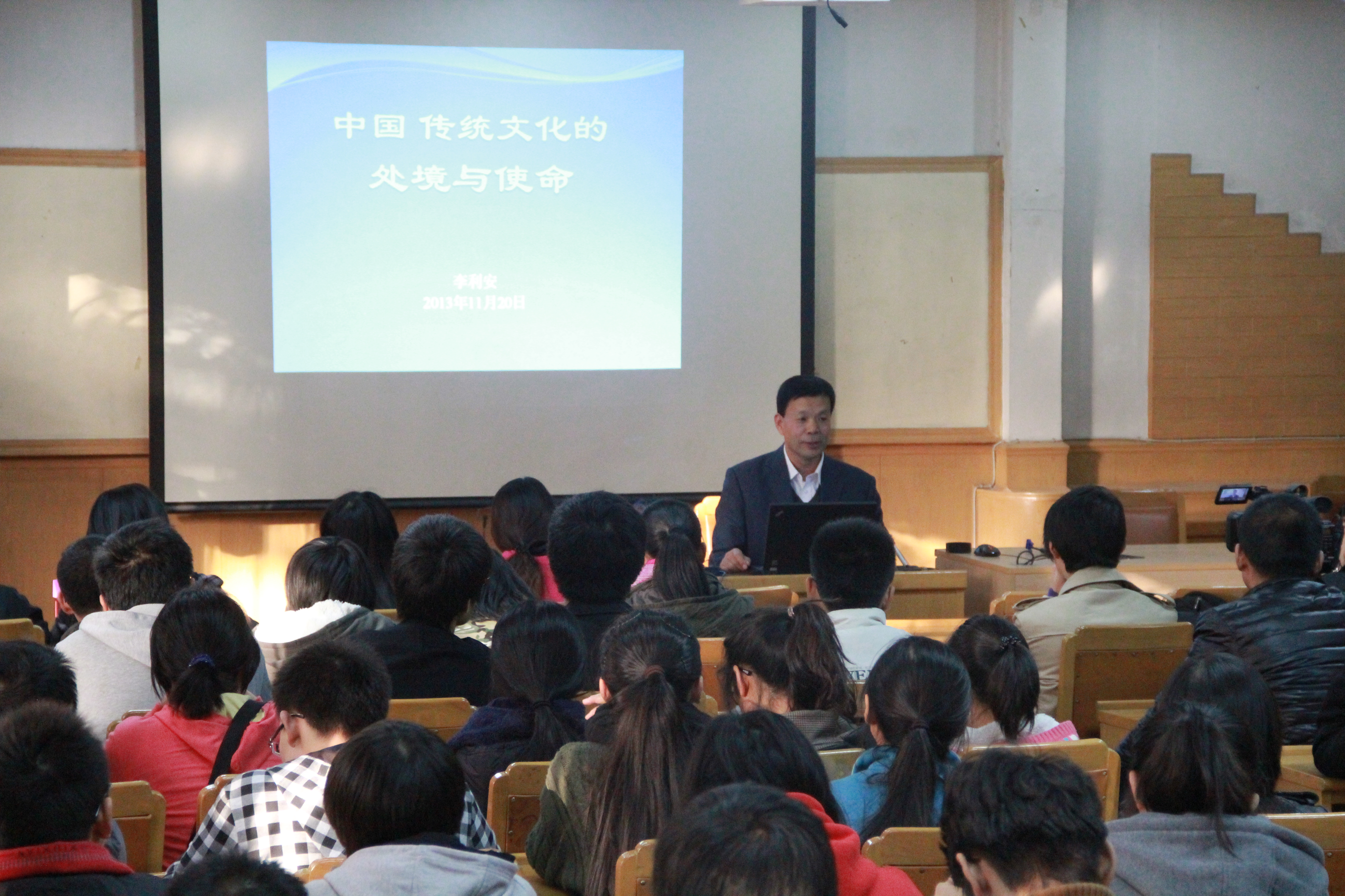 2013年11月20日下午,球盟会qmh中国史方向博士生导师李利安教授,在球盟会qmh二层多媒体会议室做了一场题为“中国传统文化的处境与使命”的学术报告。球盟会qmh副院长王新刚教授主持了本次报告。