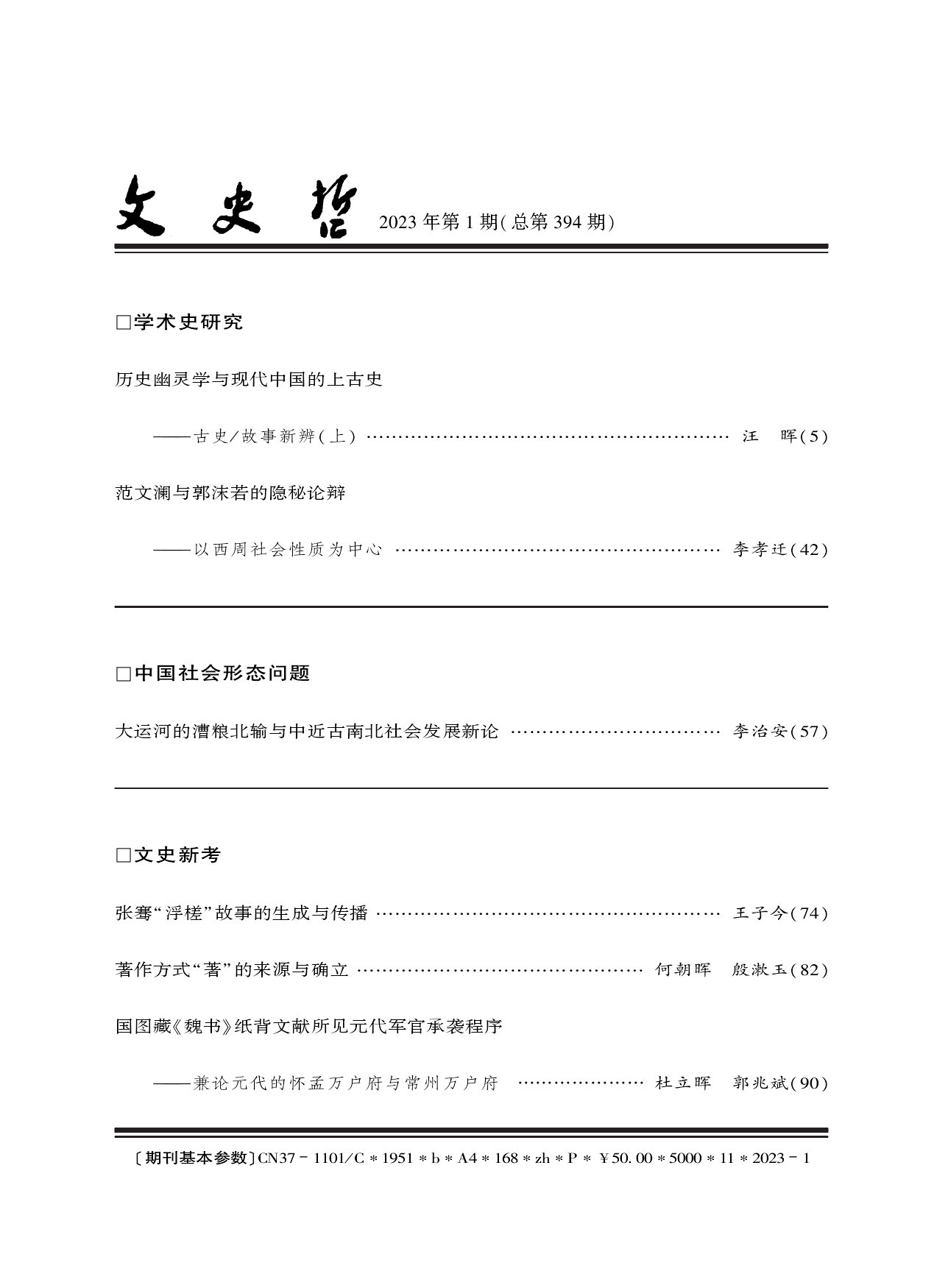 近日,王子今教授在权威期刊《文史哲》2023年第1期发表了题为《张骞“浮槎”故事的生成与传播》的学术论文。