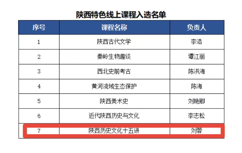 近日,省教育厅公布陕西特色线上课程立项建设名单,球盟会刘蓉教授申报的《陕西历史文化十五讲》课程项目入选。