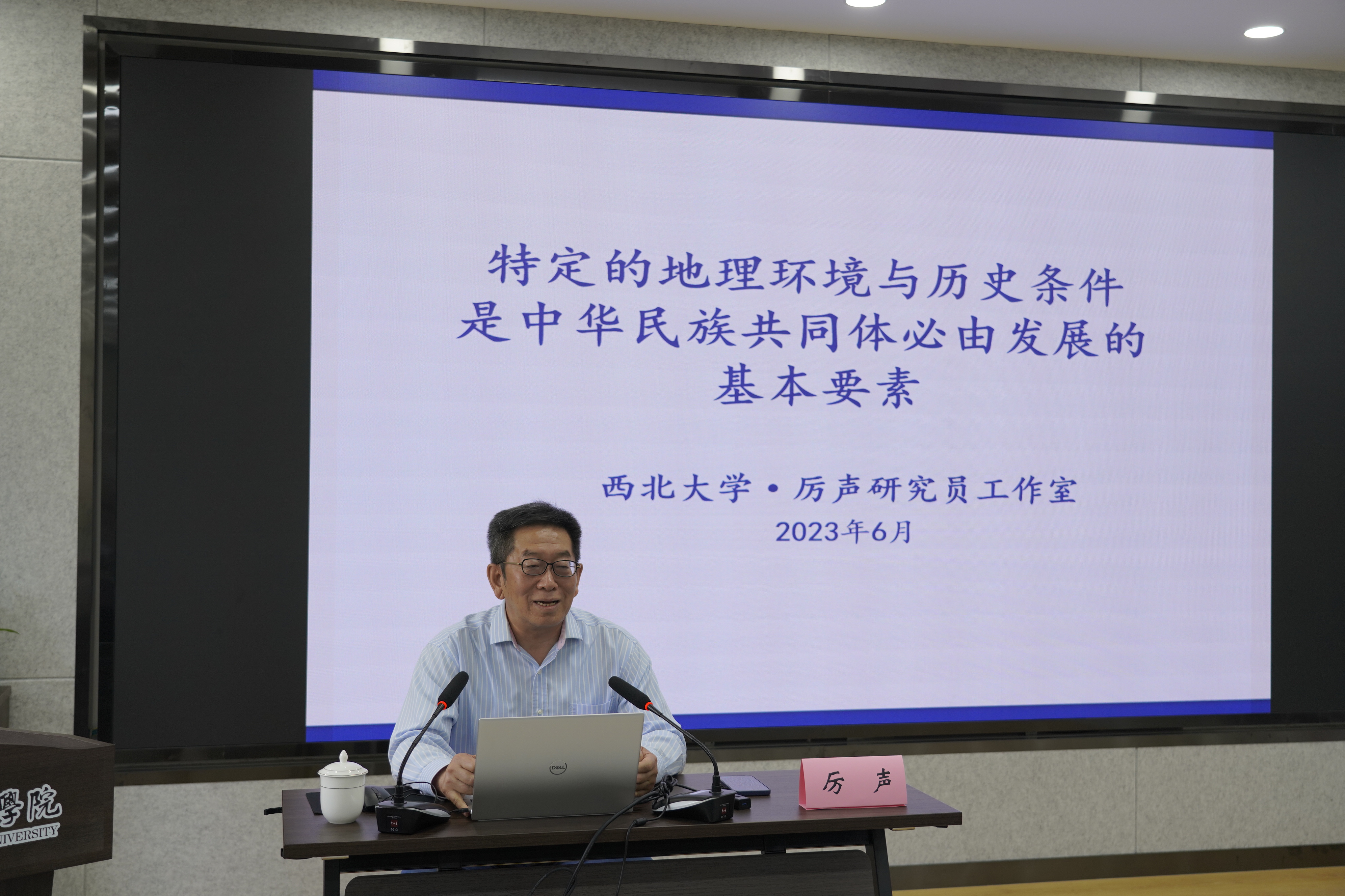 2023年6月7日下午,侯外庐讲座第二百八十六讲在球盟会qmh举行。主讲嘉宾中国社会科学院边疆史地研究中心厉声研究员作了题为《特定的地理环境与历史条件是中华民族共同体必由发展的基本要素》的讲座。本次讲座由曹循教授主持,球盟会qmh院长李军教授和校内外师生百余人聆听了讲座。