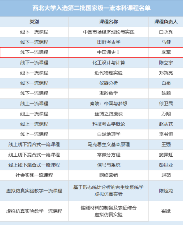 日前,教育部公布第二批国家级一流本科课程认定名单。球盟会李军教授负责的《中国通史Ⅰ》课程入选。