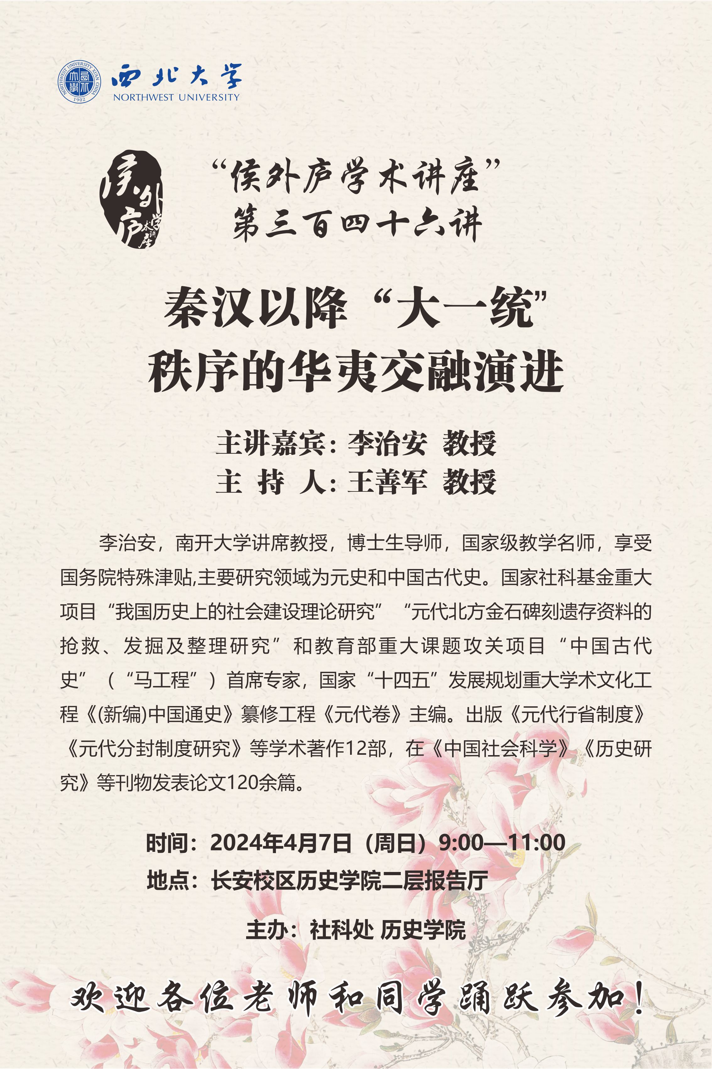 侯外庐学术讲座——李治安《秦汉以降“大一统”秩序的华夷交融演进》