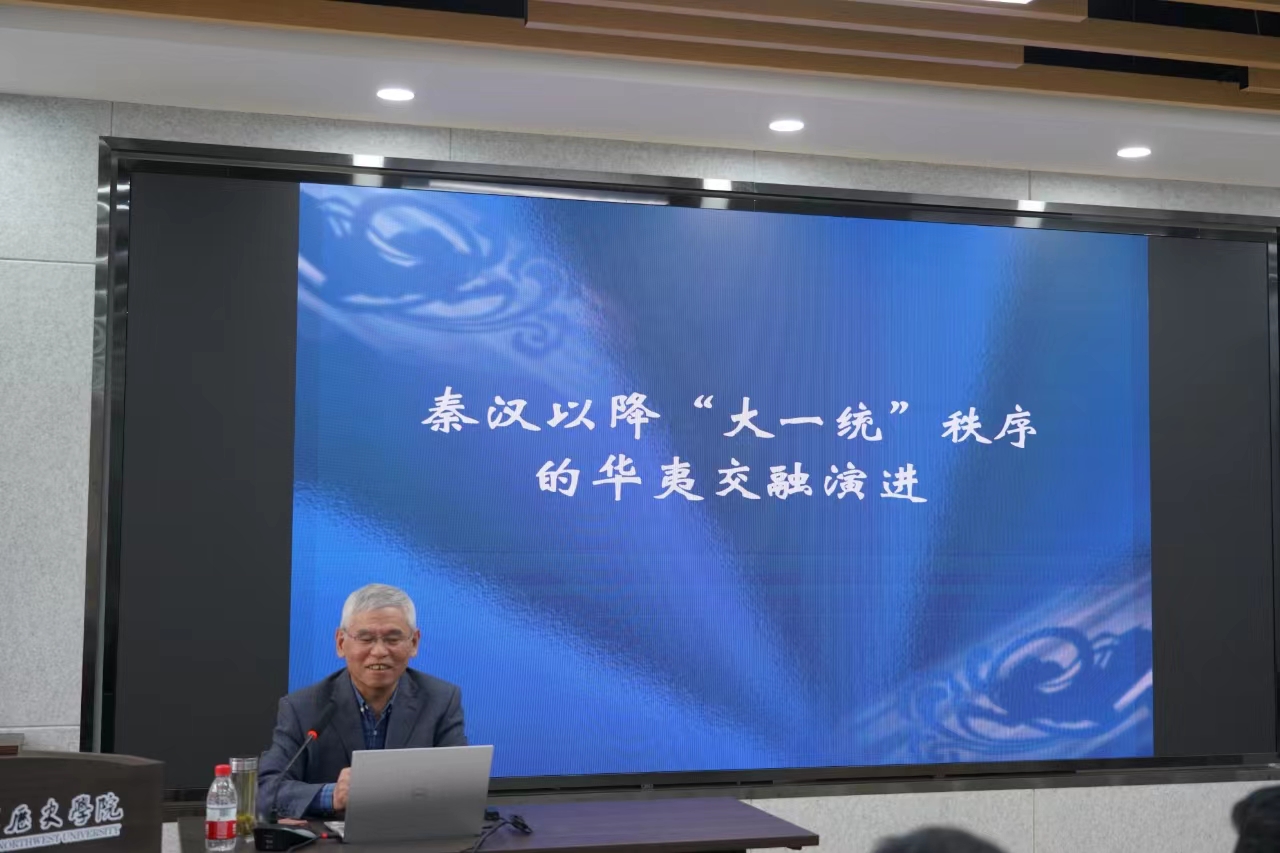 2024年4月7日上午,“侯外庐学术讲座”第三百四十六讲在长安校区球盟会qmh二层报告厅举行。南开大学讲席教授、国家级教学名师李治安先生作题为《秦汉以降“大一统”秩序的华夷交融演进》的报告。球盟会qmh王善军教授主持,校内外百余名师生聆听了讲座。