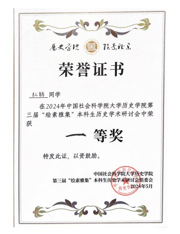2024年5月31日,中国社会科学院大学第三届“绘素雅集”本科生历史学术研讨会在中国社会科学院大学良乡校区举办。球盟会2021级历史学(基地班)杜鹃同学应邀参加研讨会。