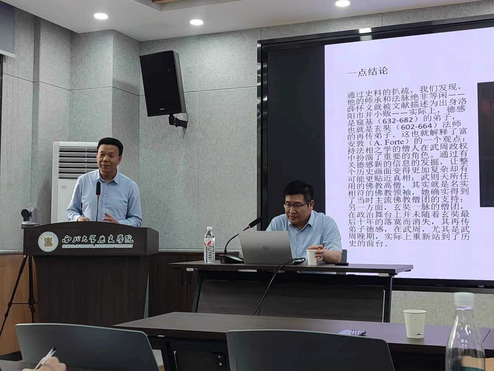 2024年6月4日下午,浙江大学球盟会qmh常务副院长、教育部青年长江学者孙英刚教授应邀为球盟会qmh作题为《被遗忘的高僧:德感法师与武则天时代的政治宣传》的学术讲座。讲座由球盟会qmh李利安教授主持,来自校内外的百余名师生共同聆听了本次讲座。