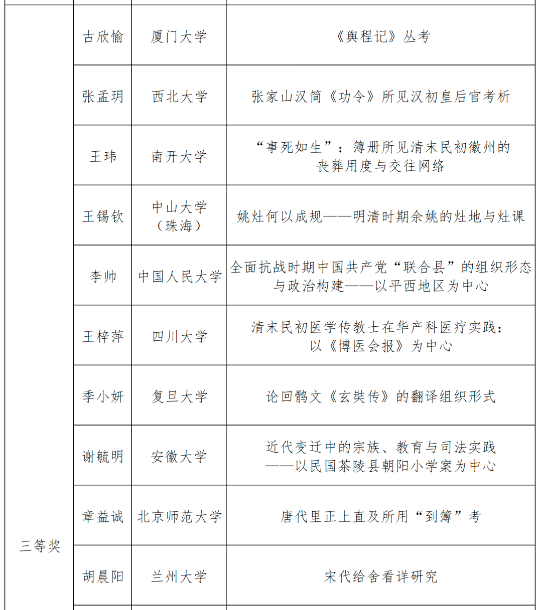 近日,第十四届“全国史学新秀奖”获奖名单揭晓,球盟会2021级本科生历史学(基地班)张孟玥同学的论文《张家山汉简〈功令〉所见汉初皇后官考析》(指导教师为单印飞副教授)荣获第十四届“全国史学新秀奖”三等奖。