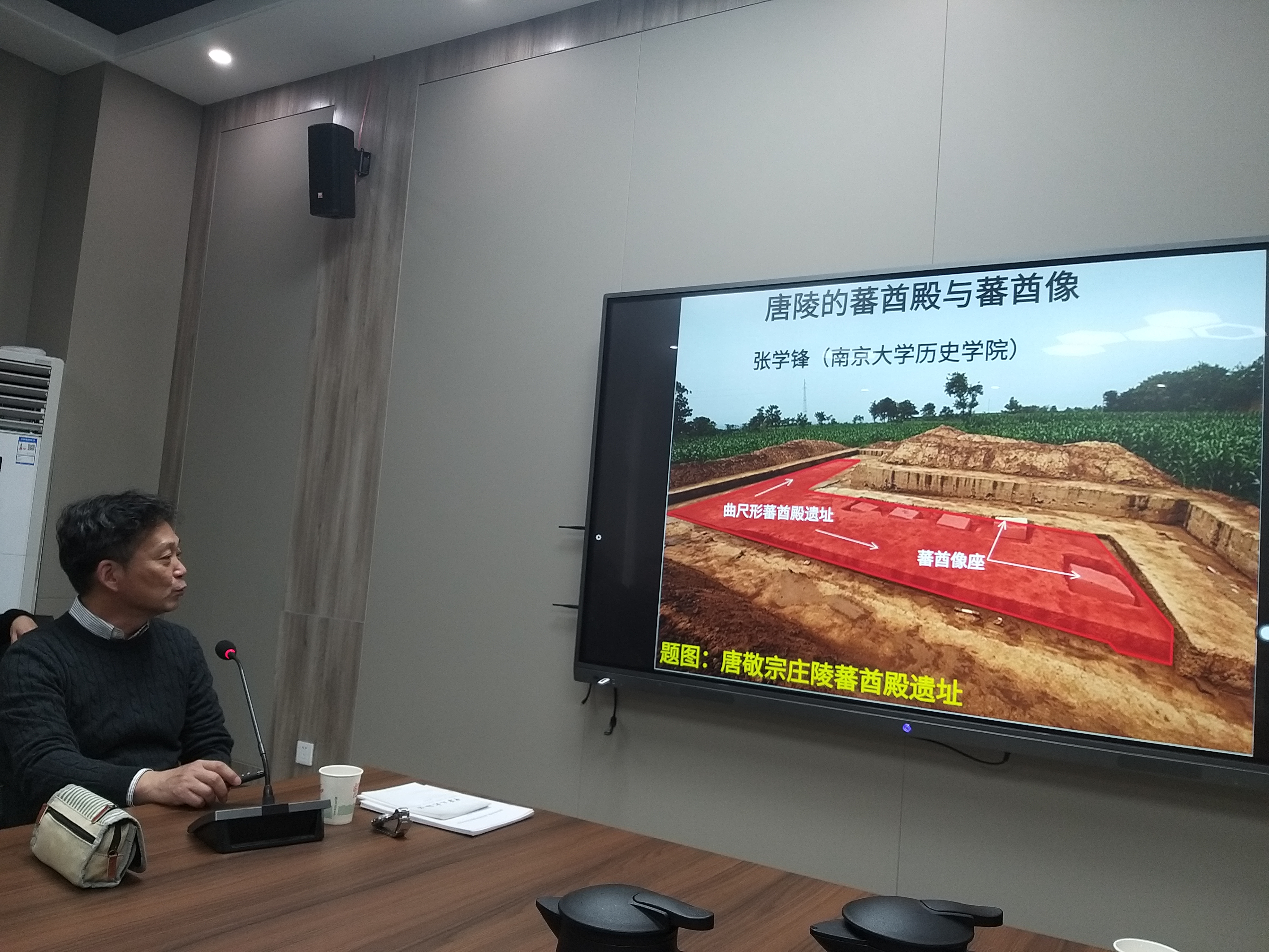 12月5日下午,张学锋教授主讲qmh球盟会亚博网址“名家讲坛”,为师生带来题为《唐陵蕃酋殿与蕃酋像》的学术讲座,讲座由贾志刚副教授主持。除来自校内的众多师生参加讲座外,还有来自陕西师范大学、西安电子科技大学、碑林博物馆等多家科研院所的专家到场聆听。讲座中,张学锋教授结合实地考察的经历,图文并茂地展示了唐陵蕃酋像及蕃酋殿的考古发掘状况,指出自睿宗桥陵始至唐末,蕃酋像和蕃酋殿的位置,从陵园南门外东西双阙的北侧,移到了双阙的南侧。随后张学锋教授依据唐陵平面形制效仿都城长安所建的一般规律,指出唐陵蕃酋像所处的位置大致相当于长安城宫城的正门承天门。如以睿宗桥陵为分界点,桥陵修建之前的蕃酋像、蕃酋殿位置大致在承天门之内;自桥陵完成至唐末,蕃酋像、蕃酋殿的位置变动到承天门之外。蕃酋殿位置的变化与现实中的礼制的变动密切相关,尤其与玄宗即位后的礼制改革关系较大,是现实礼制的影响力在物质形态上的展现。