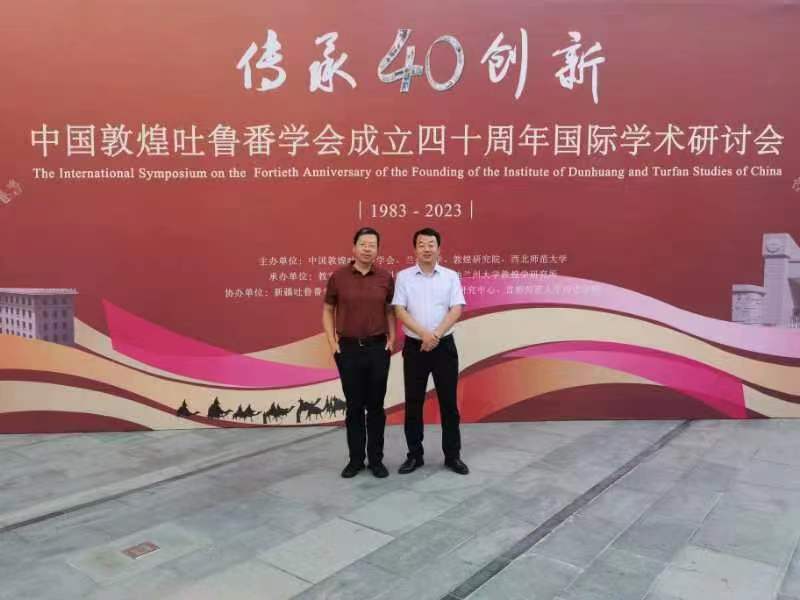 2023年8月17日至20日“传承与创新·中国敦煌吐鲁番学会成立四十周年国际学术研讨会”在兰州大学举行,球盟会李军教授和裴成国教授应邀参会并发表学术论文。李军教授发表的论文题目是《内迁党项与中晚唐京西北政局》,裴成国教授发表的论文题目是《论高昌的在地建国与文化完善的进程》,李军教授还应邀在闭幕式上对分会场一的研讨情况进行了总结。会议开幕式还举行了郑炳林教授主编《敦煌通史》(7卷本)首发仪式,李军教授担任副主编和《敦煌通史·晚唐归义军卷》的作者。会后裴成国教授赴新疆吐鲁番市参加了8月21日至24日举行的“第六届吐鲁番学国际学术研讨会”,并在会议上发表了题为《两汉魏晋南北朝丝路贸易的形态变化与西域经济的发展》的论文。