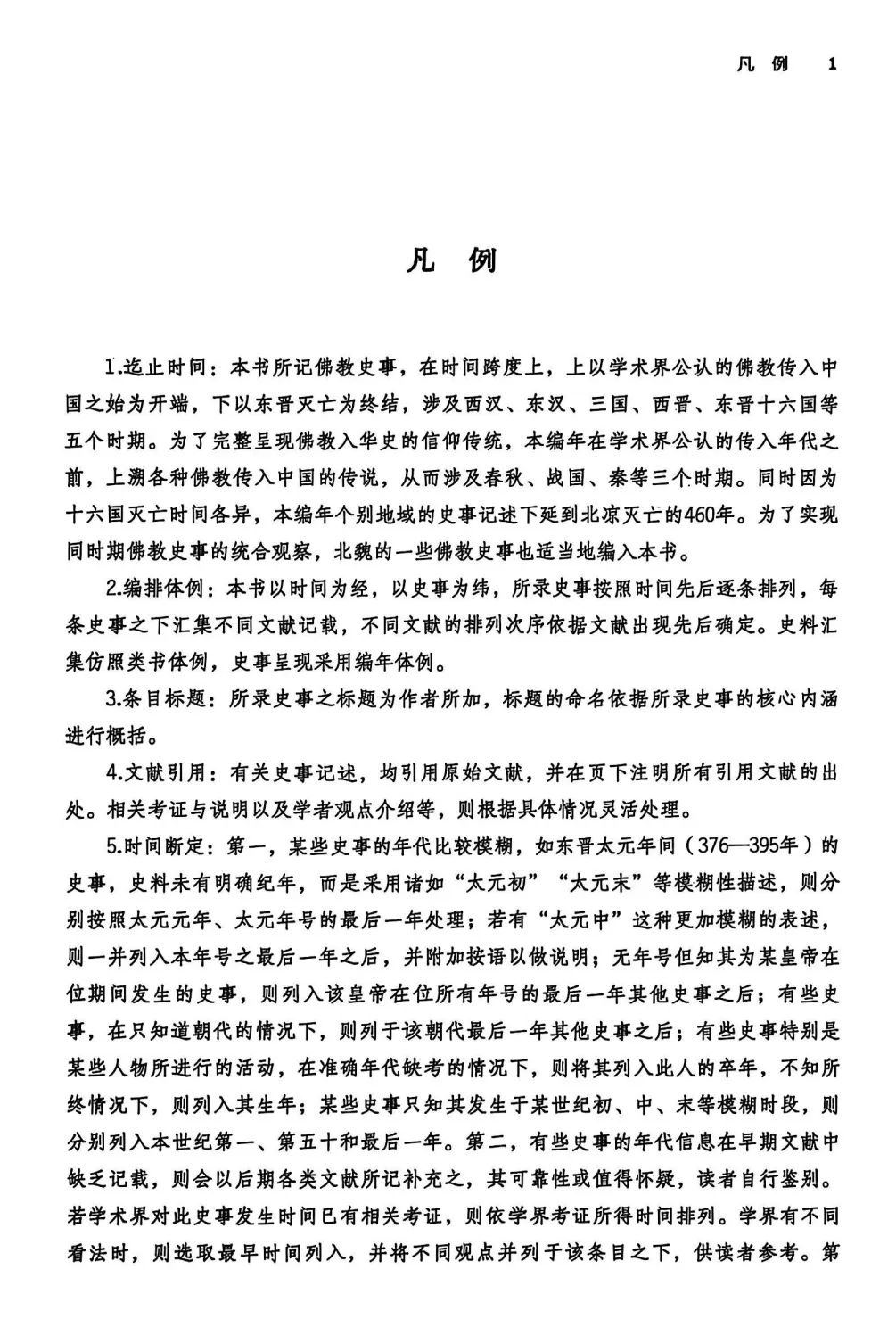 该书为大16开本,903页,总计125万字。编年正文之前有一篇2万字的前言和逐年排列的详细目录。其中前言呈现本书作者对汉魏两晋佛教一些重大问题的基本观察;目录则呈现全书收录所有史事之系年,次第相依的帝号纪年、年号纪年、公元纪年与干支纪年支撑起以时系事的整体框架,方便读者自由检索任何年代所发生的佛教史事。编年正文之后有涉及全书重要历史信息的所有专有名词的索引及参考资料和后记。其中索引有助于读者以词见事,以事索时,从一个侧面观察文化的历史流变;参考资料则基本呈现了涉及汉魏两晋佛教史事系年信息的原始文献及学界对相关史事纪年的讨论;后记则记录了本书的缘起与撰写经历等有关本书从酝酿到最终出版的基本过程,堪称书路与心路彼此激荡的珍贵记忆。