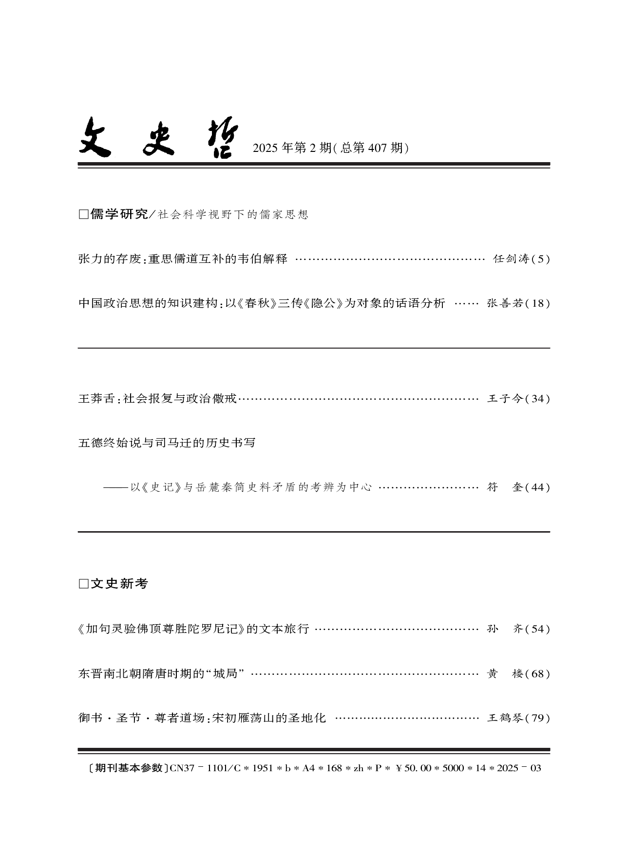 王子今教授在权威期刊《文史哲》发表论文